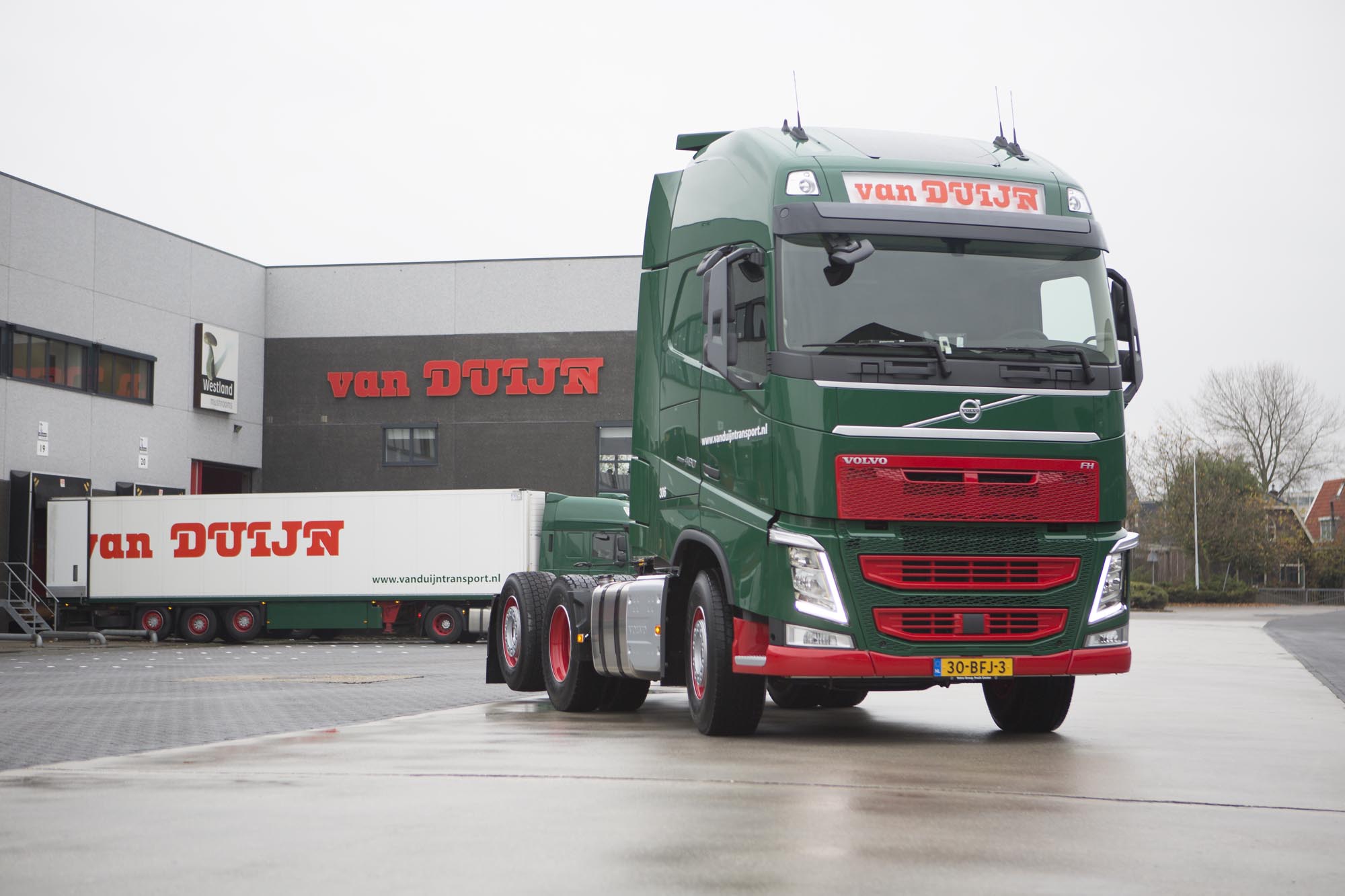 Voor het transport naar Noorwegen heeft Transportbedrijf Van Duijn zes nieuwe Volvo FH 460 6×2 trekkers in gebruik genomen. “De keuze voor Volvo is ingegeven door de veiligheidsopties, waaronder Forward Collision Warning inclusief noodremfunctie, en het lage brandstofverbruik. De 6×2 naloopas configuratie zorgt voor een betere aslastverdeling en voor meer tractie in winterse omstandigheden. Volvo heeft bovendien een uitgebreid netwerk in Noorwegen.”
