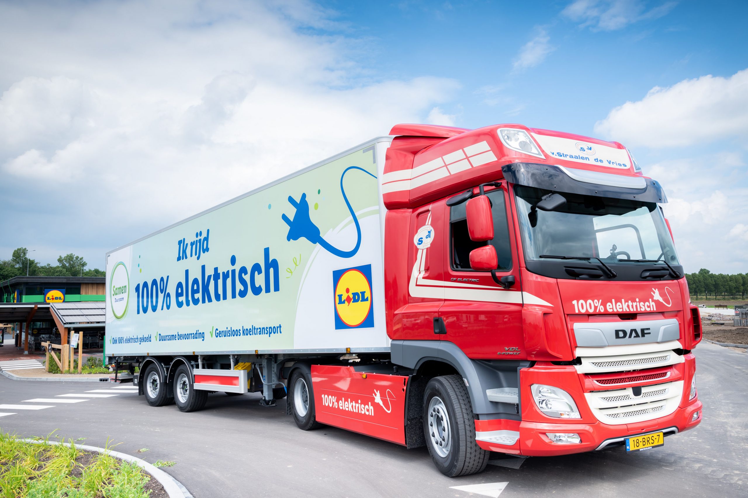 De eerste 100% CO2– en energieneutrale Lidl supermarkt van Nederland, Lidl Zero in Almere Oosterwold, wordt bevoorraad door een DAF CF Electric. Van Straalen de Vries Transport B.V. (VSDV) heeft de volledig elektrisch aangedreven trekker voor dit doel ingezet. De DAF staat voor een elektrische THT New Cool koeltrailer.