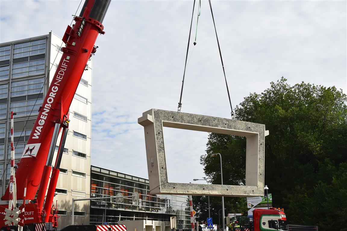 De elementen van de fietstunnel, 18 stuks in totaal, zijn één voor één aangevoerd vanaf de tijdelijke opslagplaats bij Rusthoven. Wagenborg zette een 700 tons mobiele kraan in om de 32 ton wegende elementen (14 in totaal) van de kabelkoker te plaatsen en een 500 tons mobiele kraan om de 44,5 ton wegende elementen van de fietstunnel te plaatsen. Een spectaculair schouwspel, dat door veel belangstellenden live via de webcam is gevolgd.