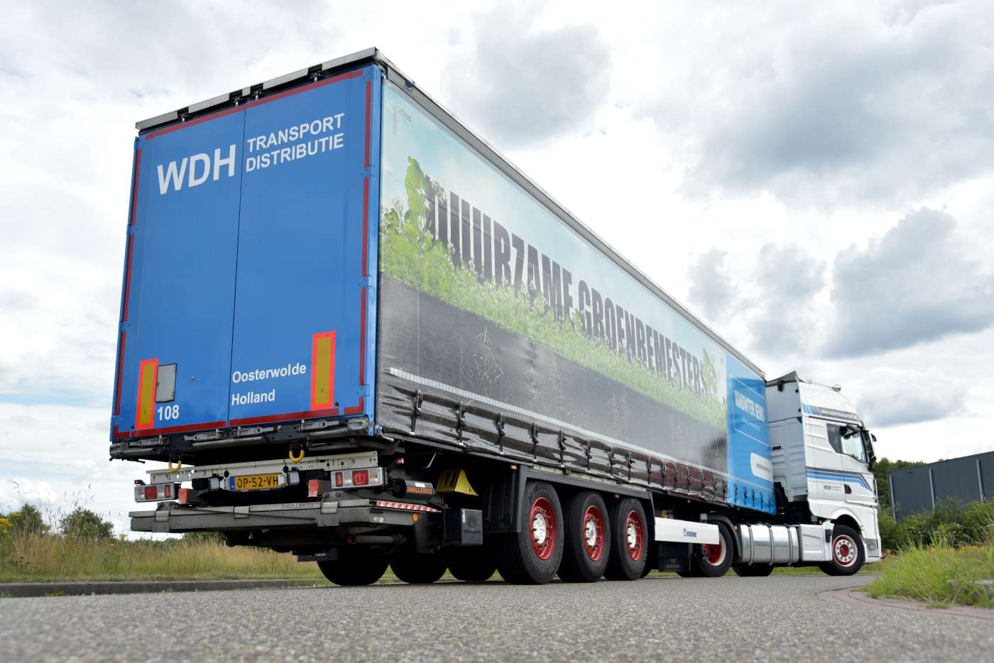 WDH maakte een stormachtige ontwikkeling door sinds de start, en één van de klanten die gebruik ging maken van hun services was Vandinter Semo Seed & Services. “Wij zijn één van hun vaste vervoerders binnen Nederland en België. Toen wij dat werk kregen hebben we een, snel leverbare Krone schuifzeil oplegger met laadklep in gebruik genomen die voorzien is van hun reclame. De, amper drie jaar oude oplegger werd keurig nieuw gespoten afgeleverd en met de nieuwe zeilen is hij niet van nieuw te onderscheiden,” aldus Klaas Peter Mulder.
