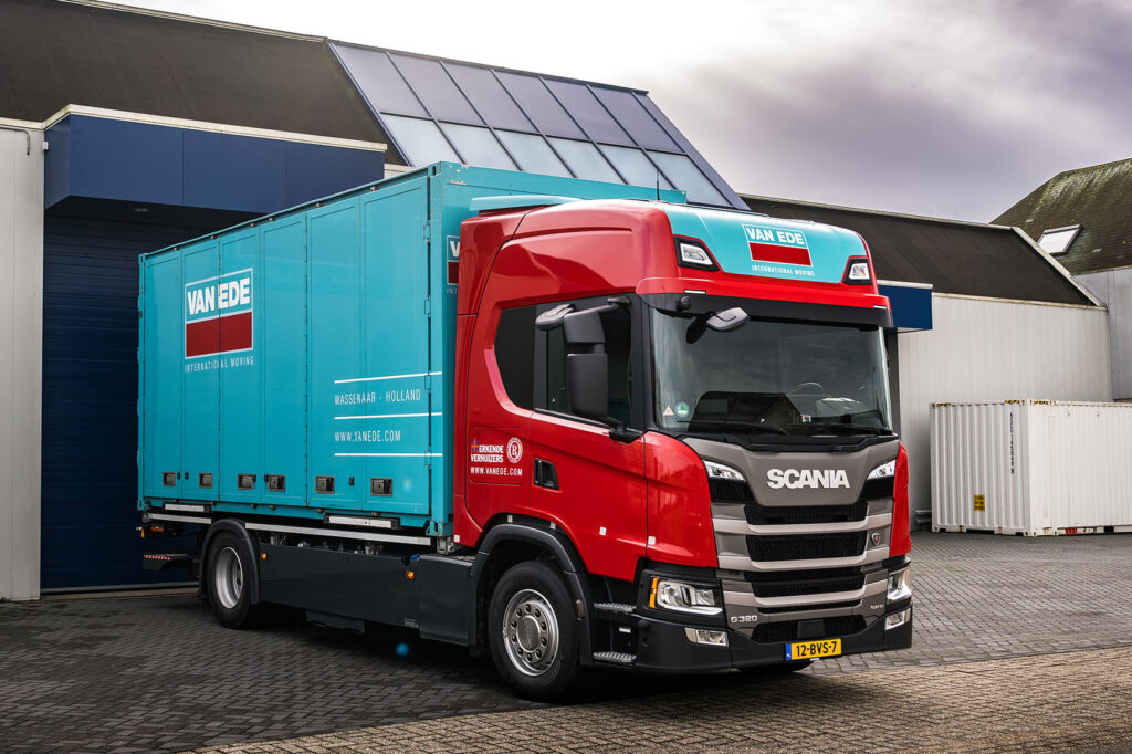 Van Ede International Moving uit Wassenaar nam onlangs een nieuwe Scania G320 4×2 bakwagen als PHEV met een dubbel batterijpakket in gebruik. De auto brengt voor de verhuizer het beste van twee werelden: Zero-emissie waar het telt, Euro 6 waar het kan.