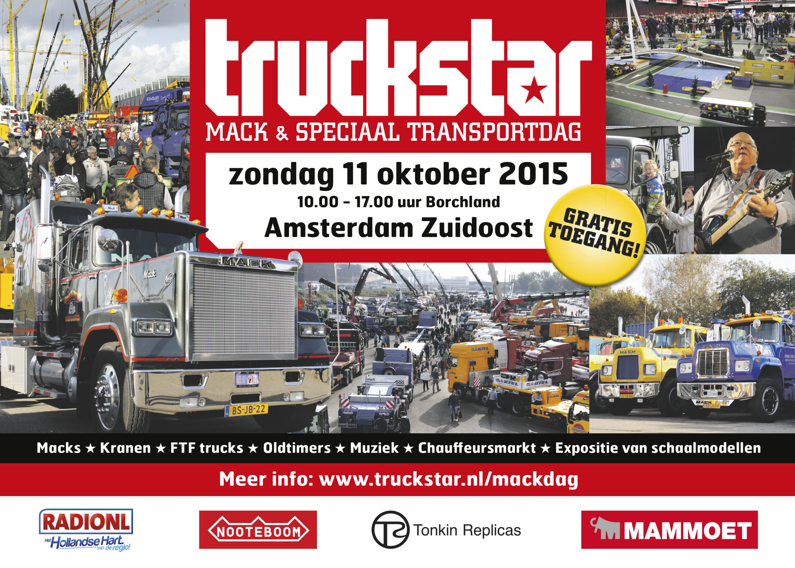 Dit jaar vind de Mackdag opnieuw in Amsterdam plaats op het Borchlandterrein. Natuurlijk vind je tussen alle trucks ook een boel ouderweste gezelligheid en een chauffeursmarkt. Daarnaast is er muziek, onder andere van chauffeursheld Henk Wijngaard!