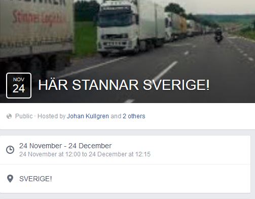 Zweedse beroepschauffeurs zijn het zat. Op Facebook is een actiegroep opgericht met de naam ‘Här stannar Sverige‘ – vertaald: Hier komt Zweden tot stilstand, of hier stopt Zweden.
